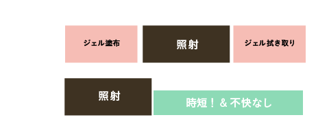 通常は専用のジェルを塗布して光を当てますが、この工程が不快に感じるお客様が多くいらっしゃいます。